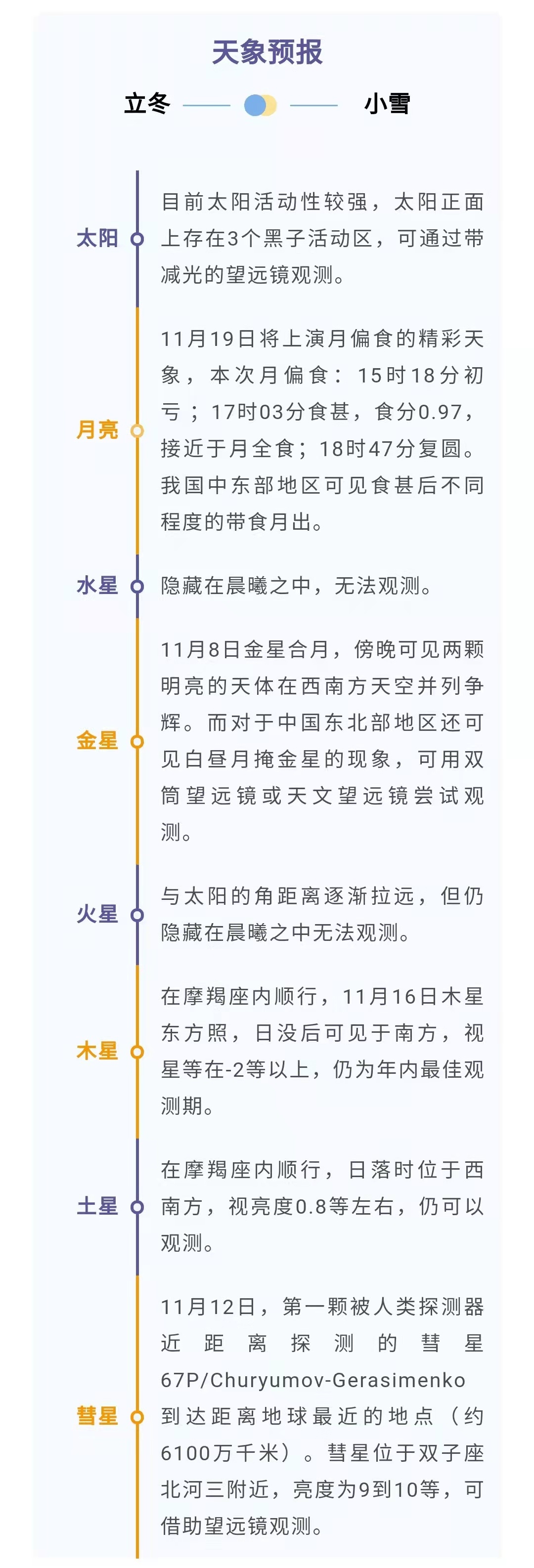 “一点禅灯半轮月,今宵寒较昨宵多。”立冬节气开启冬天序幕,今冬最美月相也即将上演。古铜色的“红月亮”你见过吗?今年冬天,我们不仅将能观赏到一场奇妙的月偏食天象,还能一睹“月掩火星”的浪漫风姿。听中科院紫金山天文台科普专家为我们聊聊冬月的那些事儿吧!