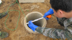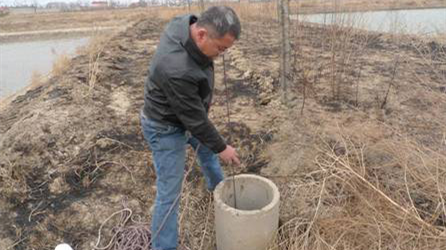 工作人员在海水入侵监测点采水样
