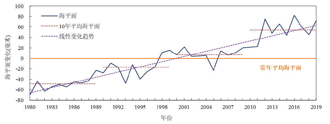 1980-2019年中国沿海海平面变化