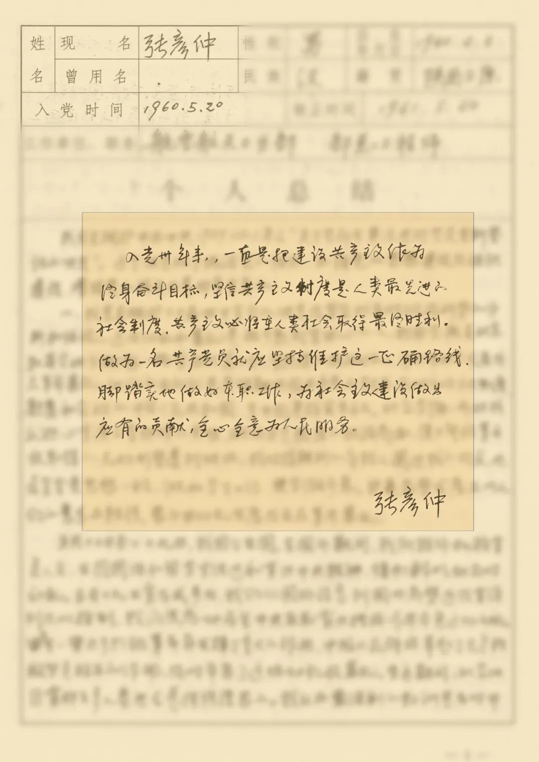 ——摘自张彦仲1990年5月《中国共产党党员登记表》