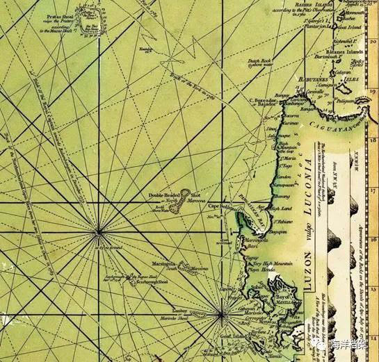 法国皇家著名制图学家让·巴普蒂斯特·尼古拉斯·德尼·马纳维尔(Jean Baptiste Nicolas Denis d’Apres de Mannevillette,1707-1780年)于1753年再版其《东方海洋》(Le Neptune Oriental)一书时,根据法国皇家科学院天文观测的成果,在荷兰海图的基础上重新加以校正,补入一幅新绘制的海图:“Cart Réduite de L’Ocean Oriental Depuis le Cap de Bonne Espérance, Jusqu’au Japon”,即好望角到日本之东洋大海图。在这幅法文版海图上,描绘了靠近菲律宾群岛之吕宋岛西海岸外的三个环礁状浅滩,自北而南分别命名为:B. Bolinao(博林脑浅滩)、B. Marsingola(玛升禺洛浅滩)、B. Mariveles(玛丽弗尔浅滩),但是没有画出黄岩岛。也就是说,截止到斯卡伯勒号(Scarborough)触礁沉没之前,菲律宾人或东来的欧洲人都还没有认识到黄岩岛的存在。