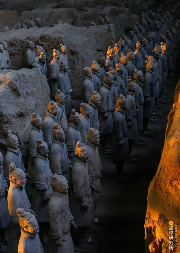 (秦始皇兵马俑现世的艺术假想图,制图@王申雯/星球研究所)