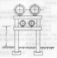 高支架敷设管道保温结构的底部距地面净高为4.5~6.0m,在管道跨越公路或铁路时采用。高支架通常采用钢结构或钢筋混凝土结构,如图3所示。