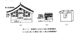 琉璃硬山五花山琉璃硬山五花山的下碱及上身和山尖里皮与大式硬山墙作法一样。上身和山尖外皮是用预制的琉璃砖仿照木屋架的样子砌筑起来的。下碱和琉璃砖之间用普通砖仿五花山墙形式砌成阶梯形后抹灰并刷红土浆,与疏璃砖相接的地方要抹成“八字”。五花山墙外皮应比琉璃屋架宽1/4柱径。琉璃屋架之间及背后也要用普通砖砌筑并在外皮抹灰刷红土浆。这段墙的外皮应比琉璃屋架退进若干,即应露出琉璃砖侧面的花饰。1