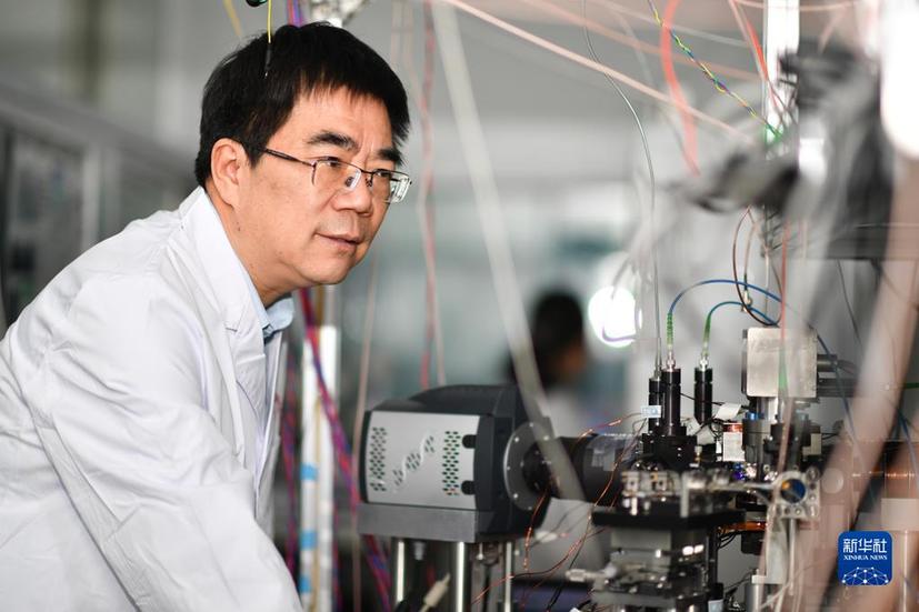 2月8日,中国科学院国家授时中心首席科学家张首刚在空间光钟实验室工作。新华社记者 张博文 摄