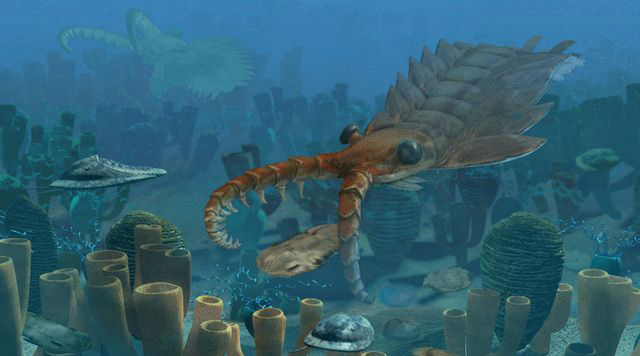地球海洋中出现的第一代霸主应该算是奇虾了,奇虾诞生于寒武纪,是地球生命史上第一批进化出眼睛的生物,在大多数生物都还未进化出真正意义上的眼睛的时代,率先拥有了眼睛就等于拥有了极大的优势,于是奇虾迅速发展,很快就称霸了寒武纪的海洋。从外观上来看,奇虾身披铠甲,前端长有布满32颗尖刺的捕食附肢,看起来攻守兼备,但实际上实力却仍旧有限。奇虾虽然可以称霸寒武纪,但与后来出现的海洋霸主相比就略逊一筹。