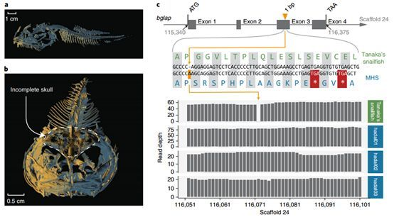 之前的研究发现,在马里亚纳狮子鱼的基因组中,调控骨骼发育和骨组织骨化的基因发生了突变。