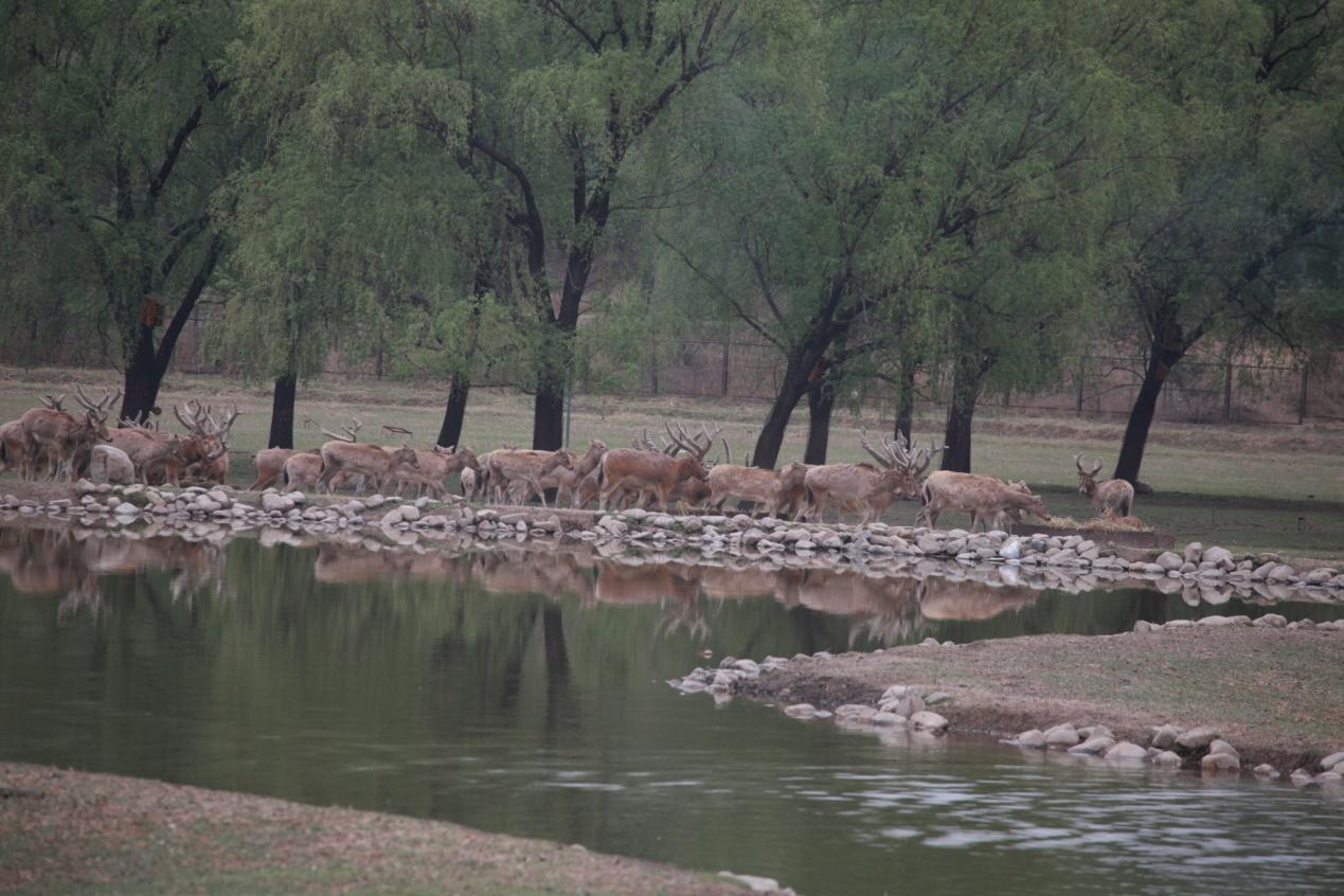 麋鹿群 (图片来源:北京麋鹿生态实验中心科普教育基地)