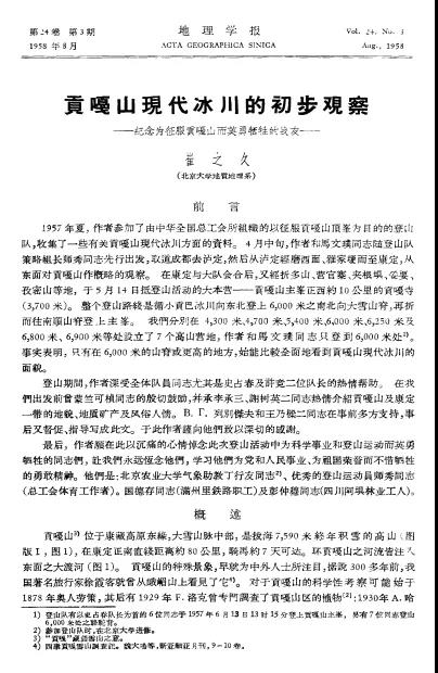 [5]崔之久. 贡嘎山现代冰川的初步观察——纪念为征服贡嘎山而英勇牺牲的战友[J]. 地理学报, 1958, 25(3).
