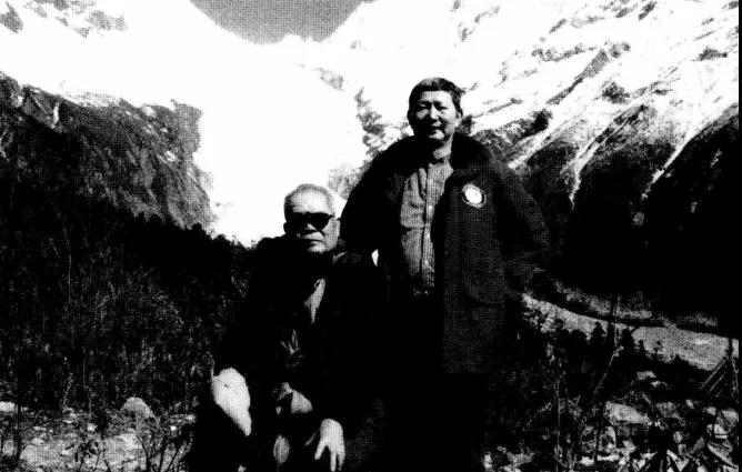 ▲崔之久教授(左)与张文敬(右)再次来到海螺沟进行考察