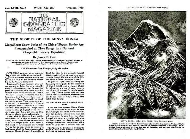 ▲洛克的文章《贡嘎荣光(The Glories of the Minya Konka)》