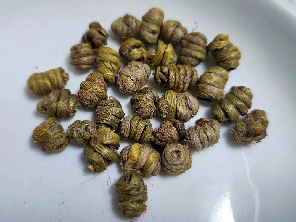 古人以石斛的假鳞茎入药,对其炮制的过程中要反复的揉搓晾晒,经过炮制的石斛茎条,虽然已经失去水分,但是茎条依然柔韧,被揉松的柔软茎条自然卷曲,形成一个个螺旋的小斗,谓之“枫斗”,又因其色泽金黄,状如卷曲的耳环而得名“金耳环”。“斛”即大斗,作为古代的量器,有一斛十斗的说法。