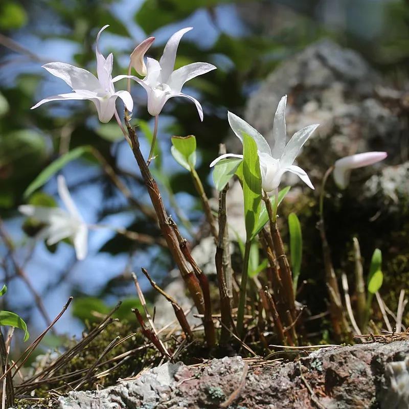 崖壁上开花的细茎石斛 | Alpsdake / Wikimedia Commons