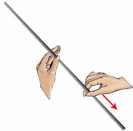 (2) 轻轻捏住杆,同时将涂有松香的手指从杆的中心点平滑地滑动到杆的一端,重复几次。