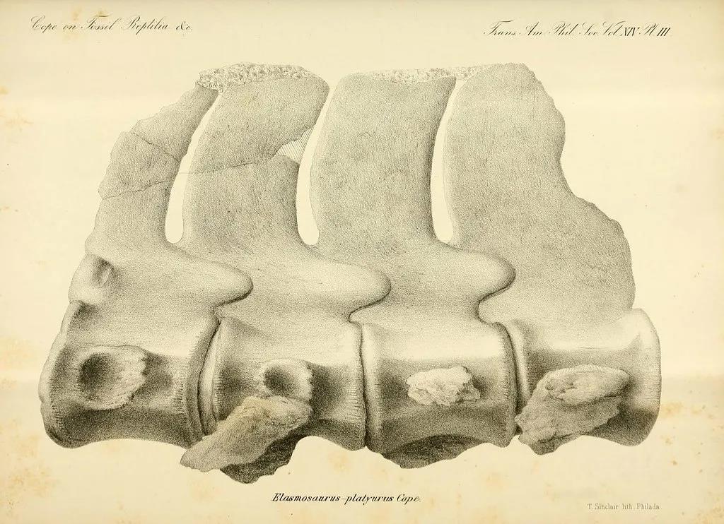 柯普绘制的薄片龙椎骨 | Biodiversity Heritage Library