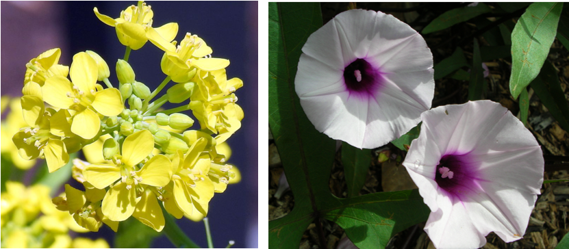 左为白菜花,右是红薯花(图片来源:维基百科)