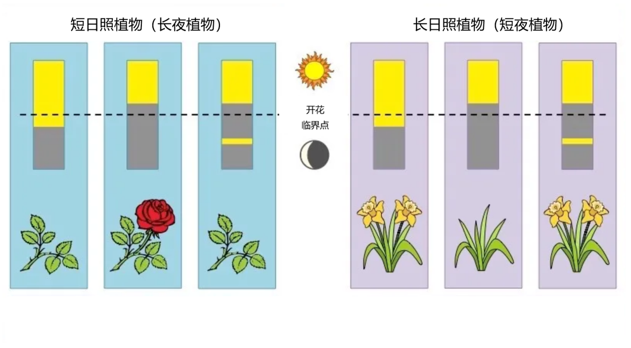 简单来说,长日照植物只有在日照时长达到一定程度时才开花;短日照植物则正好相反,必须是日照短于某一时长时才开花;中性日照植物对日照时长不敏感,开花与否与日照长度无关。