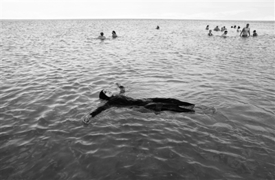 死海平均水深300米,最深处415米,游客大都挤在沙滩一二十米处,为体验漂浮的感觉,我慢慢移向深处,约30米后,竟踩到了礁石,硬邦邦的,不再是淤泥,我开始脸朝天,成“大”字形仰躺在水面,只要不动,可以稳稳地漂浮着,那感觉真奇妙。之前听说躺在死海上看书,以为是天方夜谭,不期竟是真的。我国武侠中的“水上漂”“踏雪无痕”“清波移步”等轻功,也不过如此。