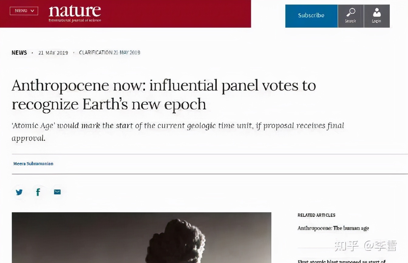2019年,人类世工作组(Anthropocene Working Group, AWG)投票决定确立一个新的地质年代——人类世(the Anthropocene),以表明人类活动对地球造成的巨大变化。