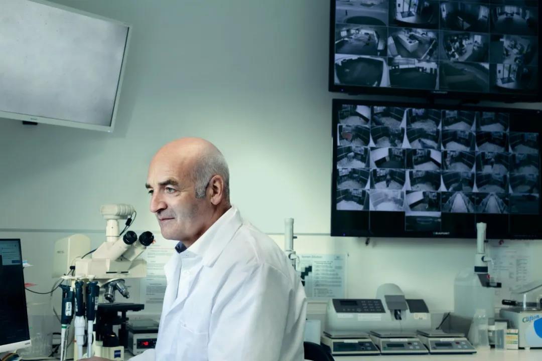 他指着大的低温罐,说:“这是液氮,好像是-196℃吧。它能让一切东西保持活性。”为了保存细胞,马特森的团队将细胞和冷冻保护剂混合,这种保护剂可以保护生理组织不被冻伤,用马特森的话来说就是防冻剂。去年,他的公司向21个国家出口了大约总价值6万英镑的动物精液。