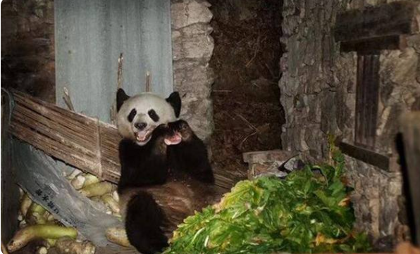 在食物极其匮乏的时候,大熊猫还被发现到当地的村民家里吃一些猪饲料和粪便。更有倒霉家伙,闯进农户家里啃坏菜刀、保温桶、木桶和锑盆。堂堂国宝混得也太惨了吧,为了吃饱真是不遗余力。