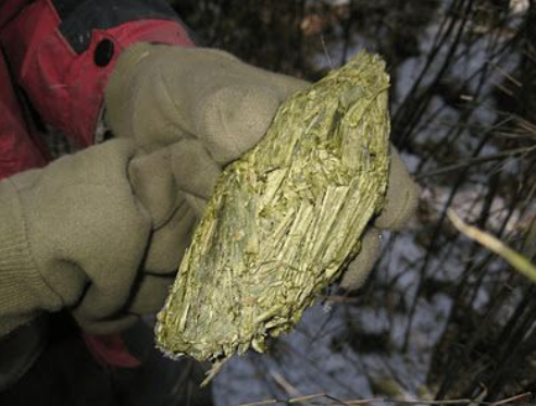 什么叫作“咬节”?大熊猫采食竹子时,一般是用臼齿从中间咬断,通过前掌抓握竹株,然后咬切成一定长度,快速咀嚼吞咽。而竹茎经过简单消化排出后,几乎仍然能保持原来的长度和形状,粪便中的这些竹茎被称为“咬节”。