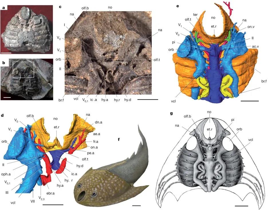 Wow!长得像个表情包似的曙鱼(Shuyu zhejianensis),真盔甲鱼目,盔甲鱼类可能是与有颌类最接近的甲胄鱼 | Zhikun Gai et al. / Nature (2011)