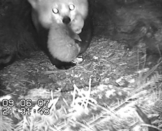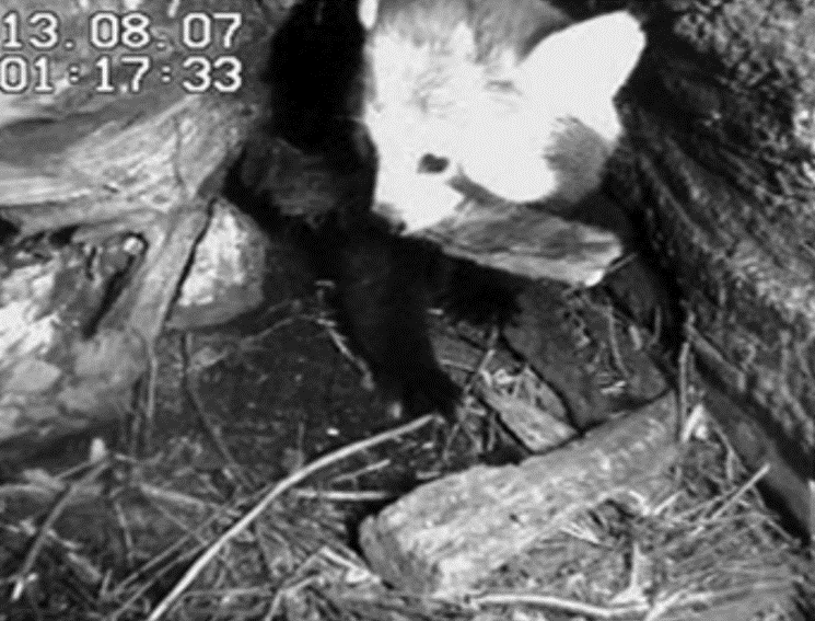 图3 小熊猫母亲衔着一块木头进入巢穴(Gebauer, 2011)