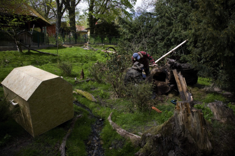 图1 德国格尔利茨动物园的工作人员正在检查做窝的倒木(Gebauer, 2011)
