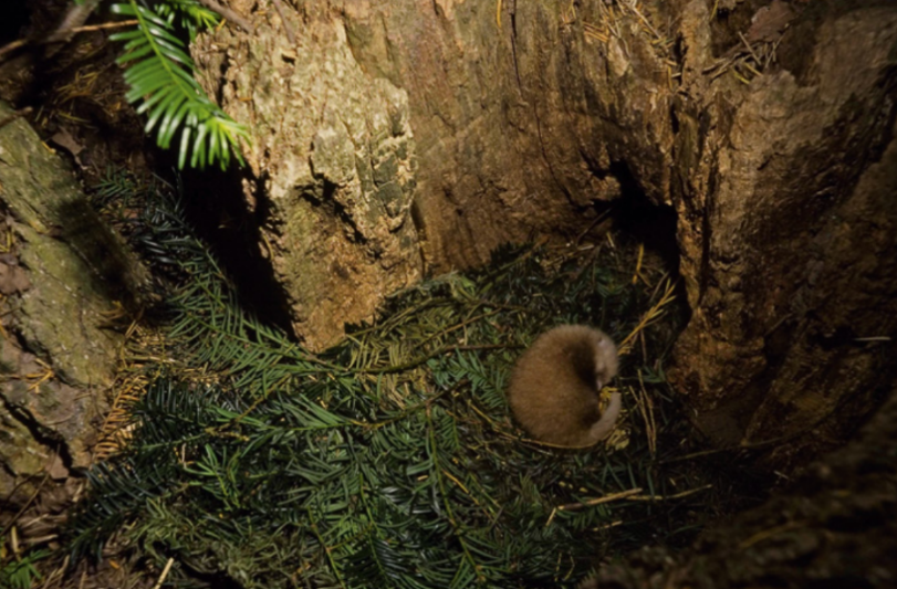 图2 小熊猫母亲在树桩中搭建的窝以及幼仔(4日龄)(Gebauer, 2011)