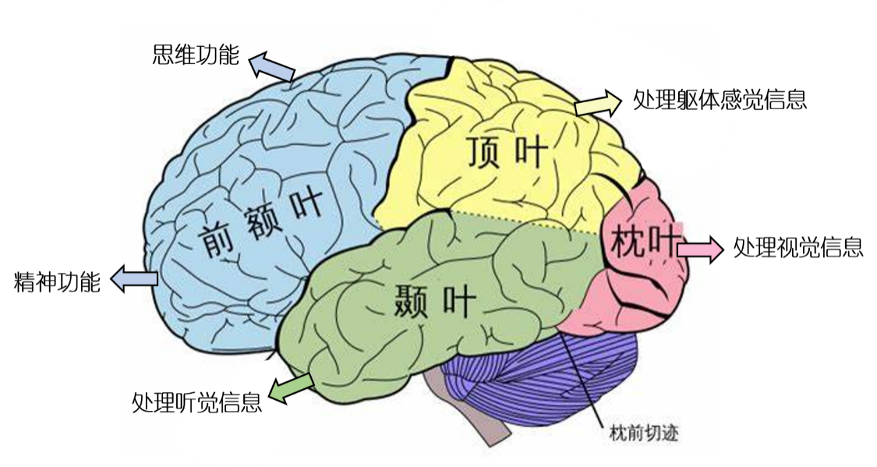 人脑主要的结构与功能(图片来源:《神经生物学原理》,作者改编)