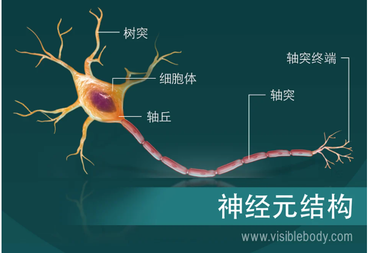 神经元的基本结构(图片来源:www.visiblebody.com)