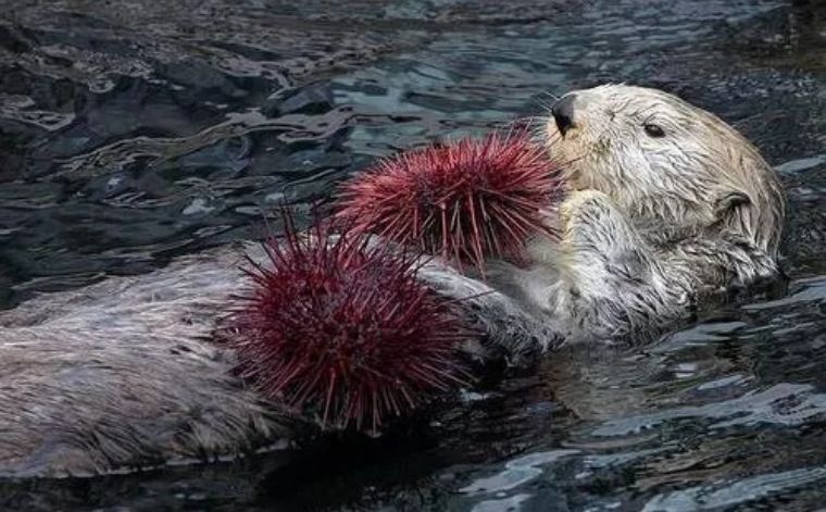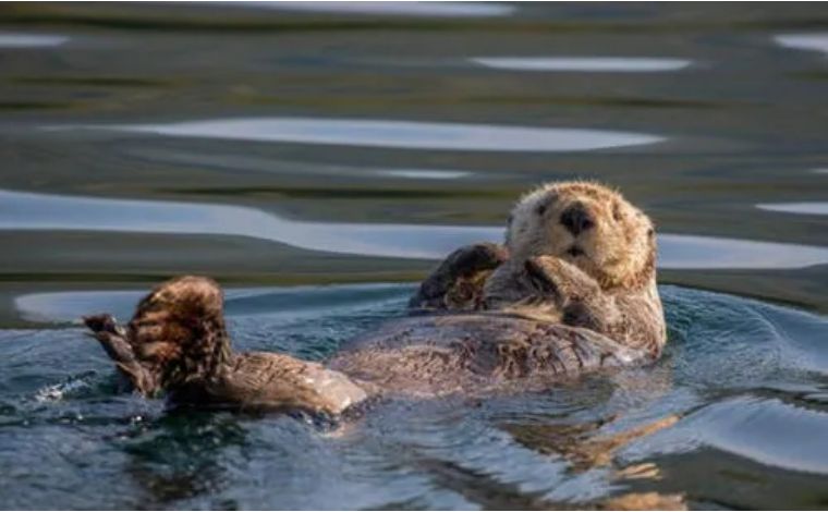 海獭最最最著名的一个行为就是怀中抱贝壳、抱海胆、抱宝宝,然后大肚朝上飘在水面上。