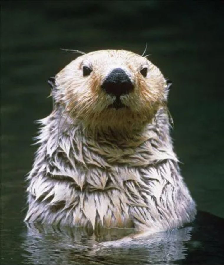 由于长期生活在海洋中,并且常常会潜入海里觅食,海獭身上披着一层保暖性能非常好的、看起来比水獭要更蓬松且充满空气的毛发。比如这样: