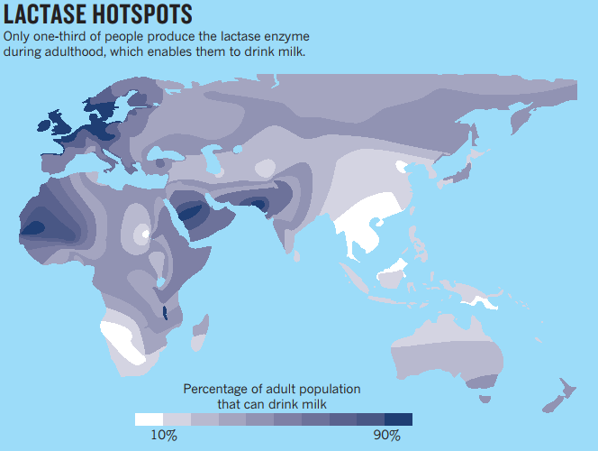 成年人乳糖酶耐受比例(图片来源:The milk revolution)