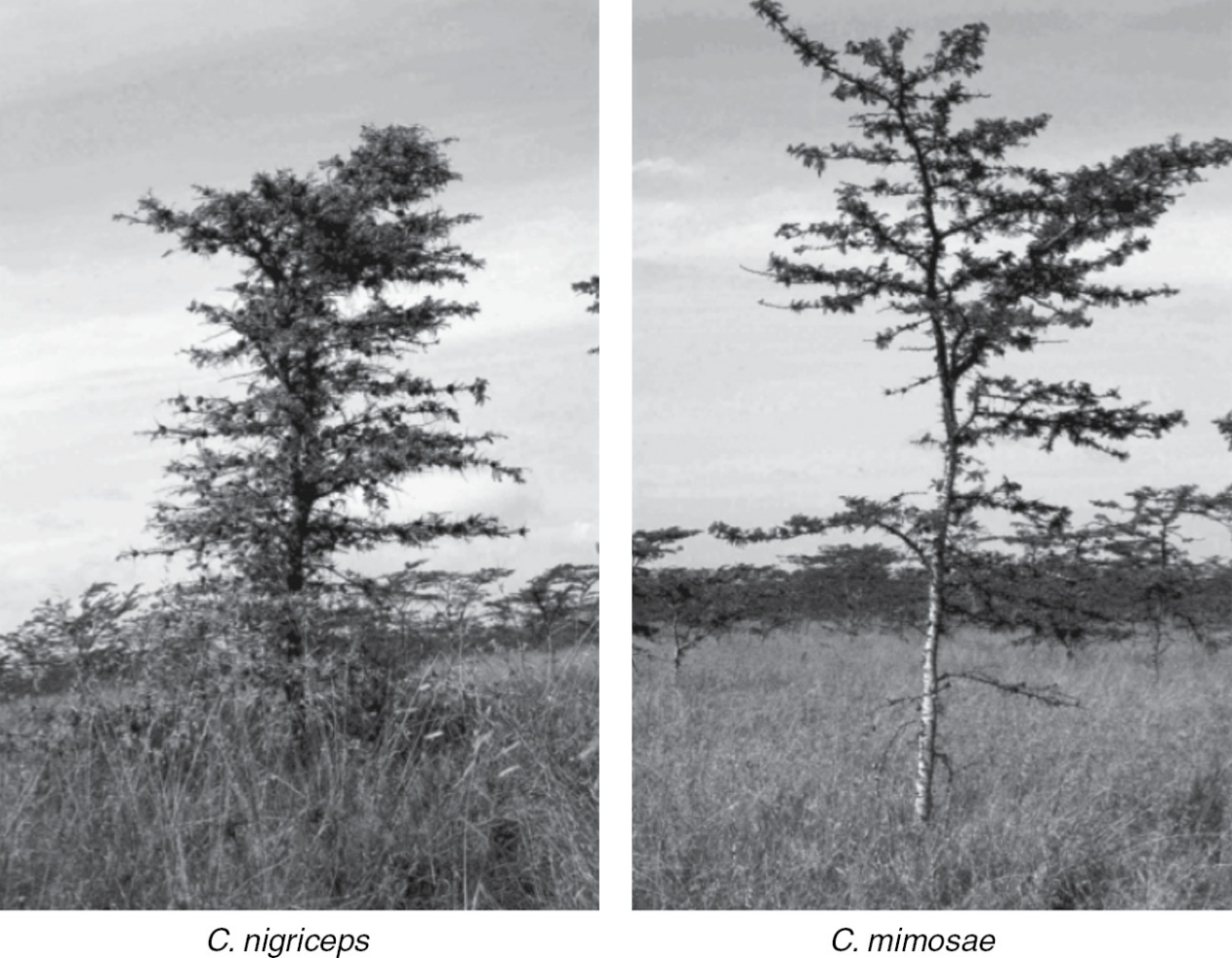 不过,有一种稀树草原的树木却很好地抵御住了这些草食动物的日常袭击,在它们的口齿之间留存了下来,它们就是非洲的镰荚金合欢(Vachellia drepanolobium)。