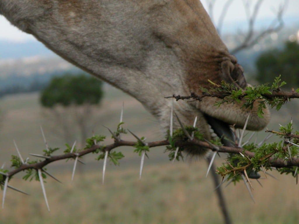 但光有刺似乎并不足以让它们防范长颈鹿的灵巧舌头。