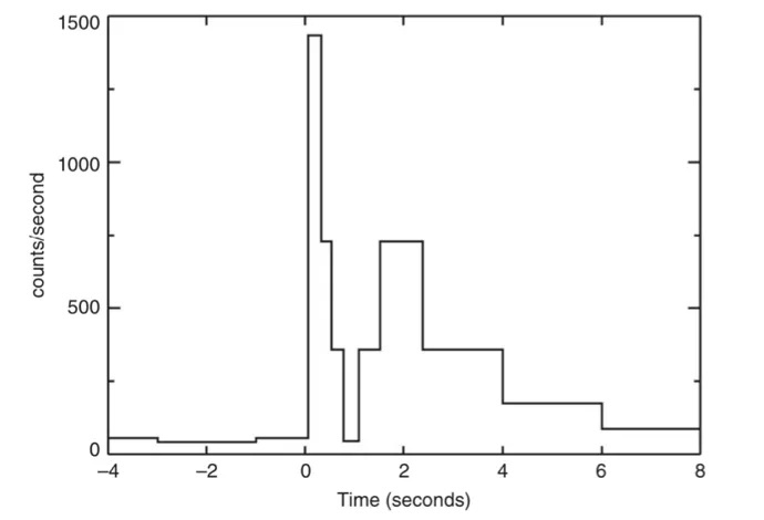 我们知道,核爆炸会产生大量的伽马射线。冷战期间,美国曾在1963年10月到1970年4月共发射12颗Vela号军事侦查卫星,通过监测伽马射线来监视地面核爆炸试验。1967年,卫星意外地监测到一些短暂出现的伽马射线,其光变结构与核试验的模式明显不同,随后克莱贝萨德尔(Klebesadel)等人证实,这些射线并非人为,而是来自宇宙空间。不过由于军事保密的原因,关于伽马射线暴的首批观测资料直到1973年才发表。伽马射线暴,简单来说就是一种宇宙空间中伽马波段流量急剧增加又急剧衰减的现象。
