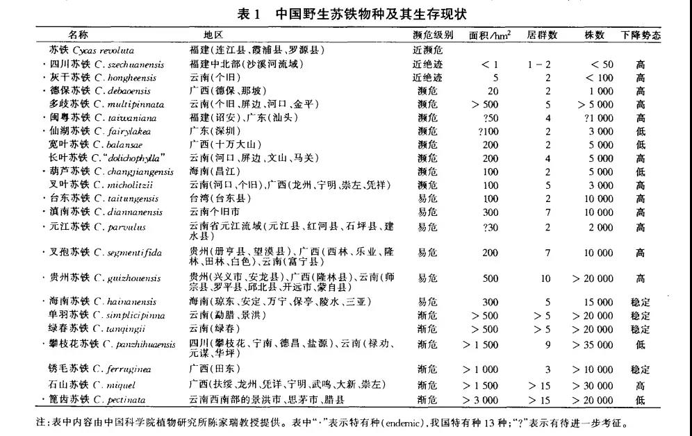苏铁属物种的现状 | 周洁敏 / 《中南林业调查规划》 (2003)