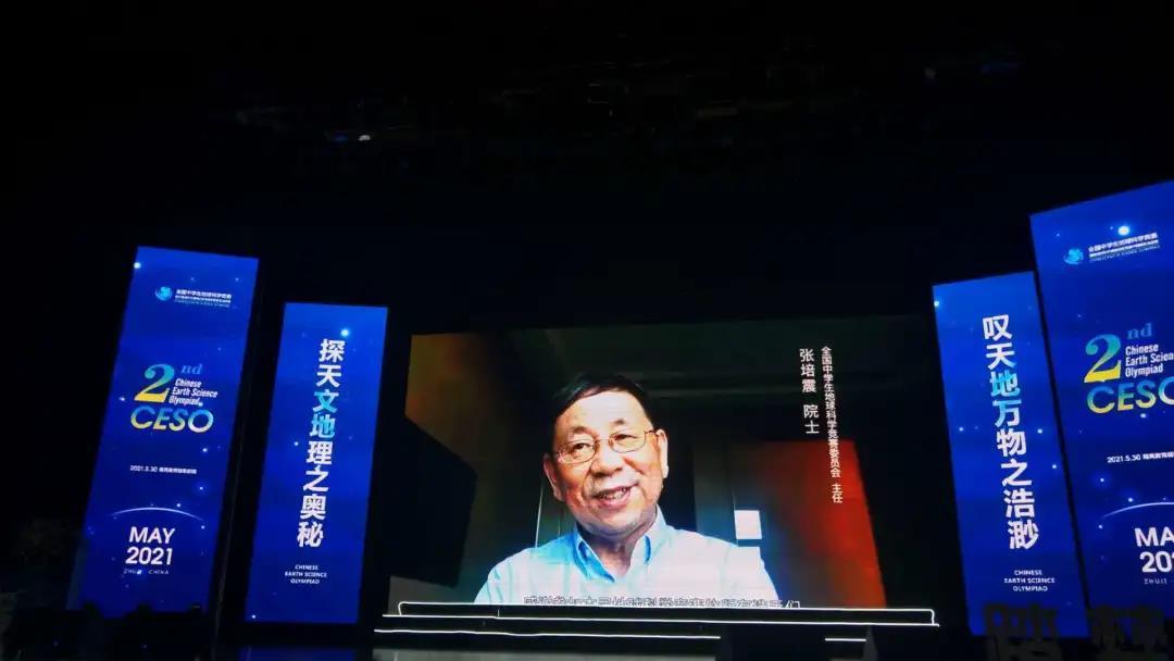 中国地震学会理事长、全国中学生地球科学竞赛委员会主任张培震院士因参加同期的两院院士大会未能到场,他为同学们录制了祝贺视频。“夫天地者,万物之逆旅也;青年者,百代之希望也。”张培震院士欢迎全国热爱地球科学的青年学生相聚于此次地球科学的盛会,并祝愿本届竞赛成为各位青年学生在地球科学领域万里征途的第一步!
