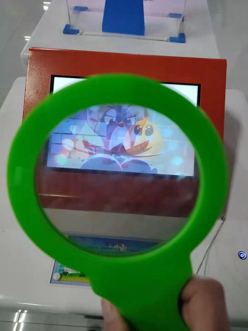 产品概述:展项由多媒体播放系统、液晶屏显示装置(经过特殊处理)、“放大镜”观察装置等构成。利用液晶屏的成像特点,将液晶屏进行了特殊处理,直接观看时,屏幕上只能看到白色的一片,用“放大镜”观看时则可以清晰的看到动画内容。