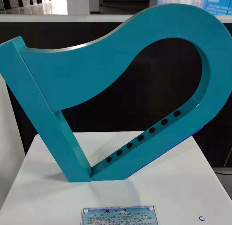 光琴是一种利用光敏元件制成的电子乐器。每个光束都相当于一根琴弦,代表一个固定的音符,用手指挡住光束时,光信号被转化为电信号,仿佛在拨动竖琴,效果非常逼真。