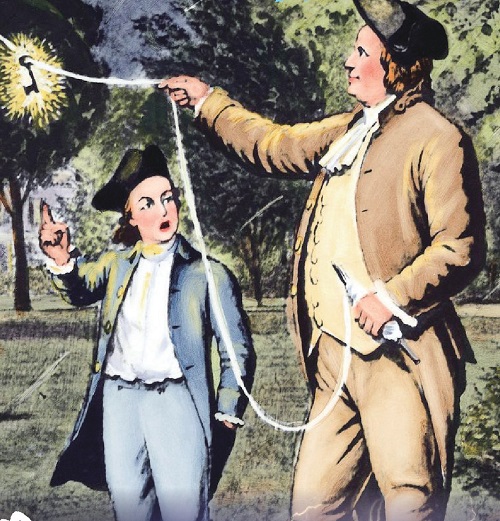 1752年5月,在电闪雷鸣的波士顿,富兰克林紧握系着风筝线的铁钥匙对儿子大声喊道。富兰克林借用风筝成了第一个触摸到闪电的人,但后来的物理学家发现:风筝不可能受到雷击,否则富兰克林就会被当场击毙,他只是幸运地摸到了风筝感应生成的环境电荷。
