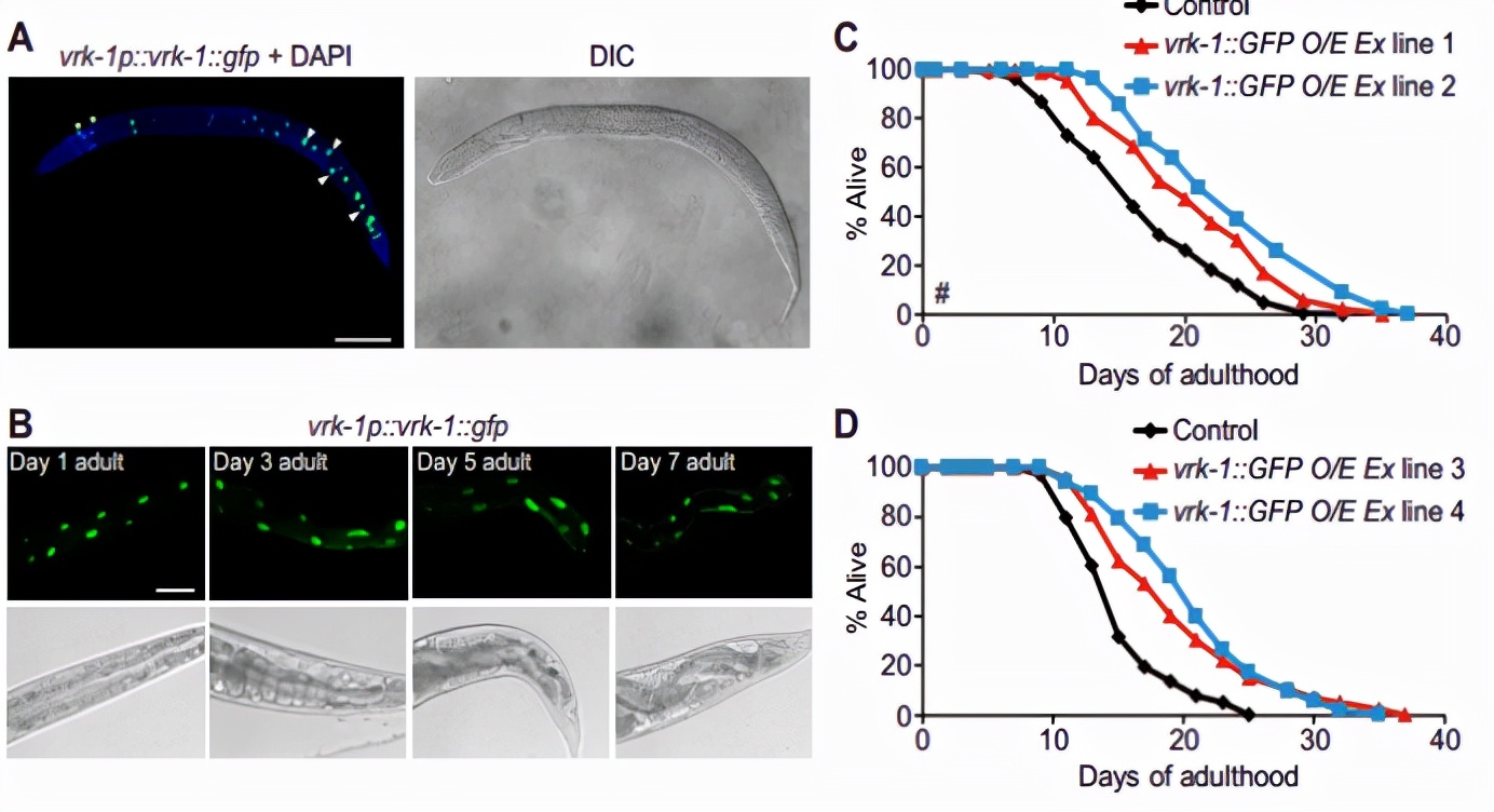 3 Park, Sangsoon, et al. "VRK-1 extends life span by activation of AMPK via phosphorylation." Science advances 6.27 (2020): eaaw7824.
