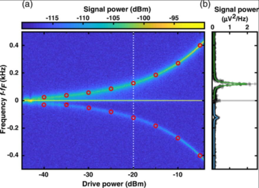 因此,研究人员测量中追求的是一个不同的概念,不在整个相空间中检查噪声,而是仅根据其中出现的频率进行频谱解析。除驱动器频率外,频谱还显示另外两个频率分量,一个在驱动器的左侧,一个在驱动器的右侧,它们被指定为热噪声。康斯坦茨大学的理论物理学家Gianluca Rastelli博士和Wolfgang Belzig教授以及密歇根州立大学Mark Dykman教授也参与了这项研究,准确地预测了这种更多频率的发生。