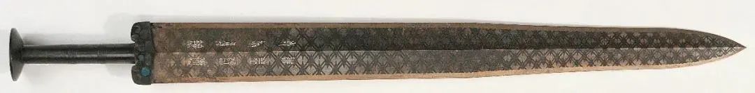 更引人注目的是,剑身满饰非常规则的黑色菱形纹。为了解开这一千古之谜,研究人员于1977年借助静电加速器,利用质子X射线荧光非真空分析技术,检测了该剑不同部位的元素及其含量,推测菱形纹可能是经硫化处理形成的。但是,这种解释的说服力仍很有限。