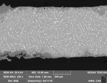 图17 合金残片截面SEM背散射图像(边缘深色区为锈层)(图片来源:中科院自然科学史研究所综合实验室)