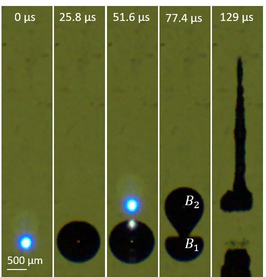 研究人员首先使用激光产生气泡,形成直接射向介质的水柱。然后比较了针对凡士林和一种广泛用于模拟人体组织的透明琼脂凝胶的单泡和双泡喷嘴。双泡过程产生了拉长、快速、聚焦的射流,当定向到琼脂凝胶时,这些射流的长度和体积都会增加。只有5次脉冲穿透1.5毫米-足以刺穿人体皮肤。这是在没有现有激光注入系统中使用的特殊微喷嘴情况下实现,在凡士林中,双泡喷射产生的穿透长度与单泡喷射相同,但破坏面积减少了45%。