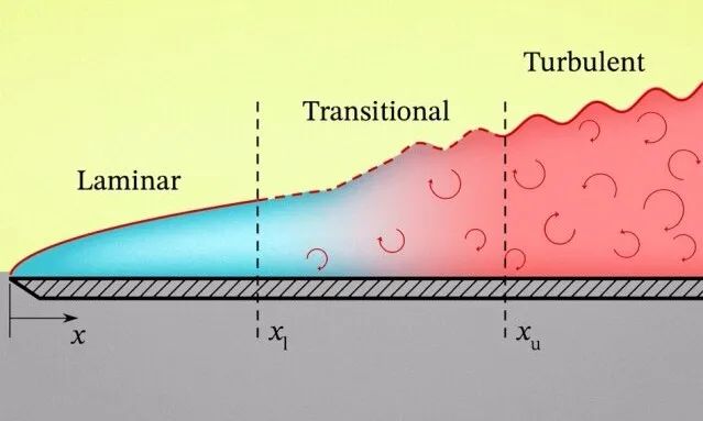 研究人员表示:一个漫长的过渡区与第一个和最后一个区域一样重要。这种差异与流体可以流动的两种不同方式之间的转换有关,当水或空气开始沿着平整的固体薄片流动时,就会形成一个薄的边界层。在该层内,由于摩擦力,最靠近曲面的部分几乎不会移动,恰好在其上方的部分流动得更快,依此类推,直到它以原始流动的全速移动,这种穿过薄边界层的稳定、渐进的速度增加称为层流。