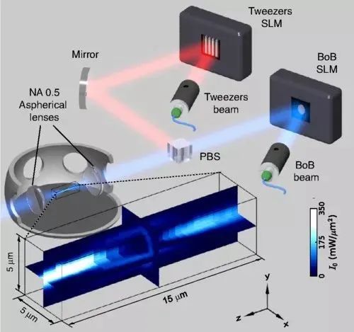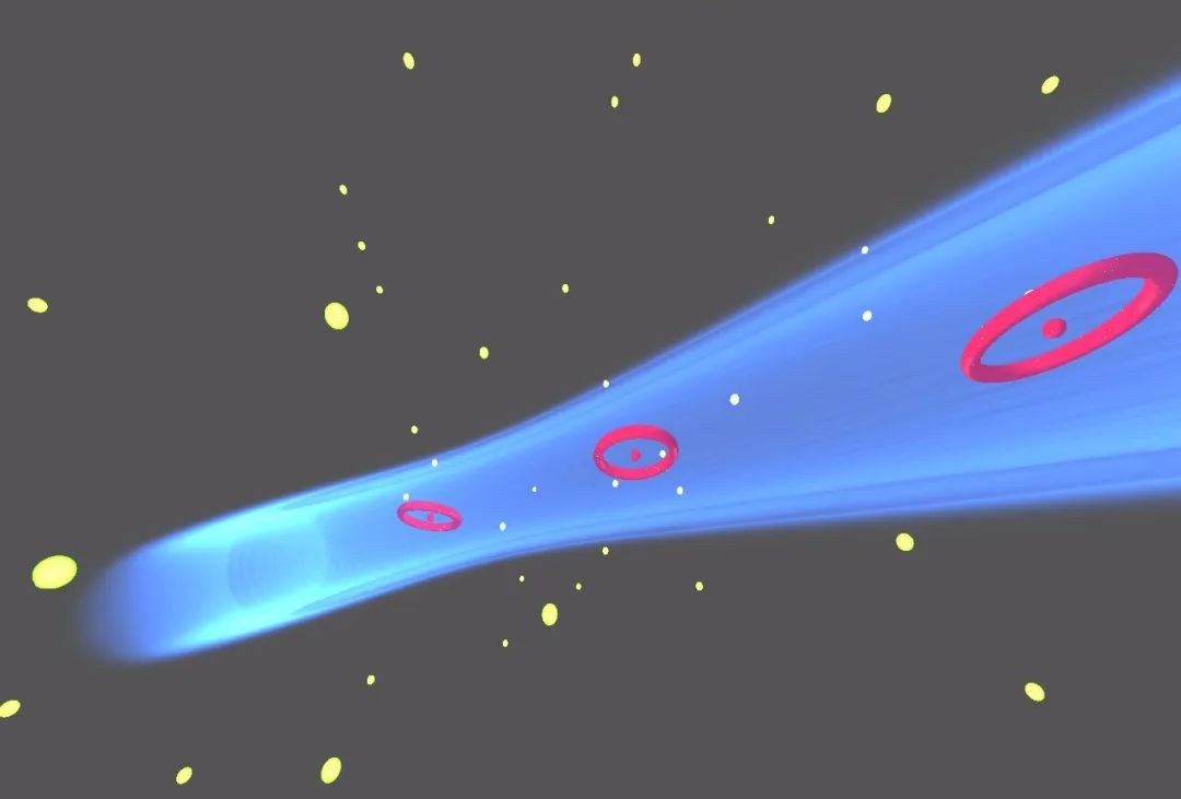它可以相当好地描述为一个电子在圆形轨道上远离原子核运行,这个轨道几乎和细菌一样大。因此,电子几乎是自由的,自由电子和任何带电粒子一样,都受到强烈光场的排斥。研究人员基本上利用了环形里德堡原子被强光排斥的事实来捕获原子。为了实现这一点,研究人员制造了一个甜甜圈形状的光束,更具体地说,是一个中心有一个暗斑的环形激光束,原子最终会被困在那里。